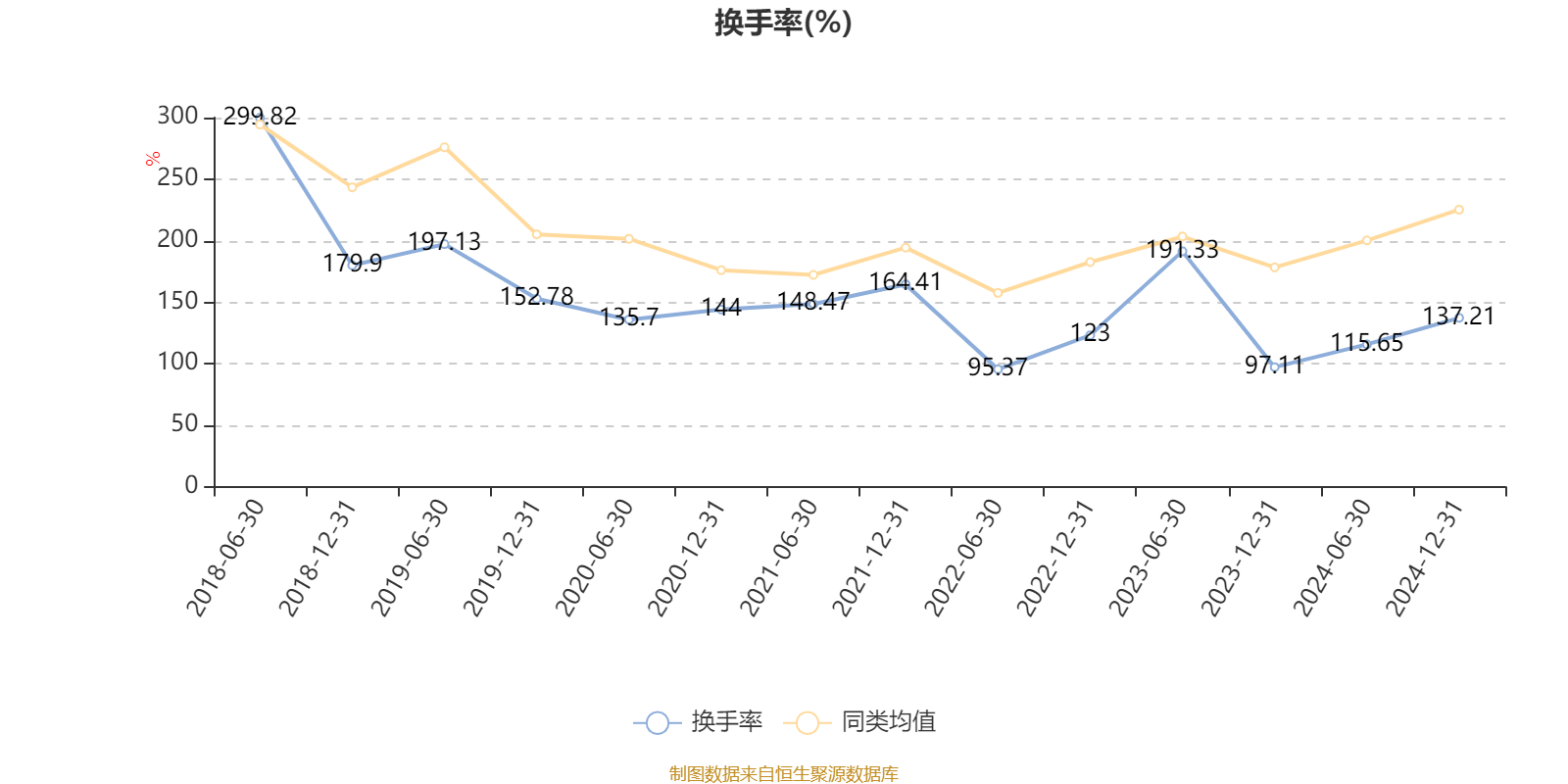 截至2024年12月31日,基金最近一年换手率约252.41%,持续6年低于同类均值。