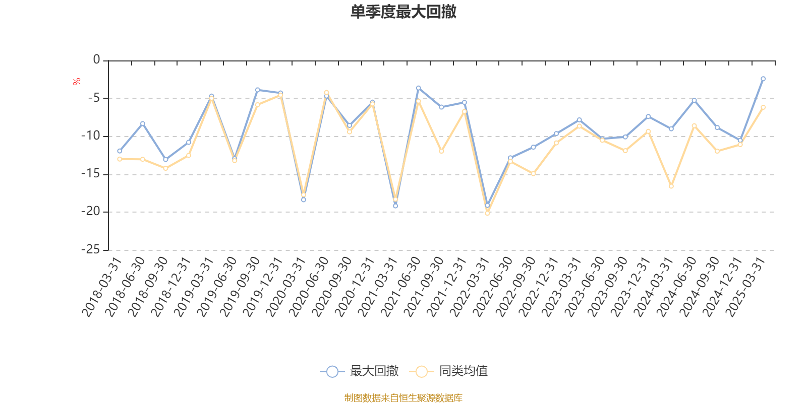 通过所选区间该基金净值增长率分位图,可以观察该基金与同类基金业绩比较情况。图为坐标原点到区间内某时点的净值增长率在同类基金中的分位数。
