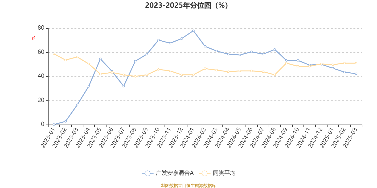 通过所选区间该基金净值增长率分位图,可以观察该基金与同类基金业绩比较情况。图为坐标原点到区间内某时点的净值增长率在同类基金中的分位数。