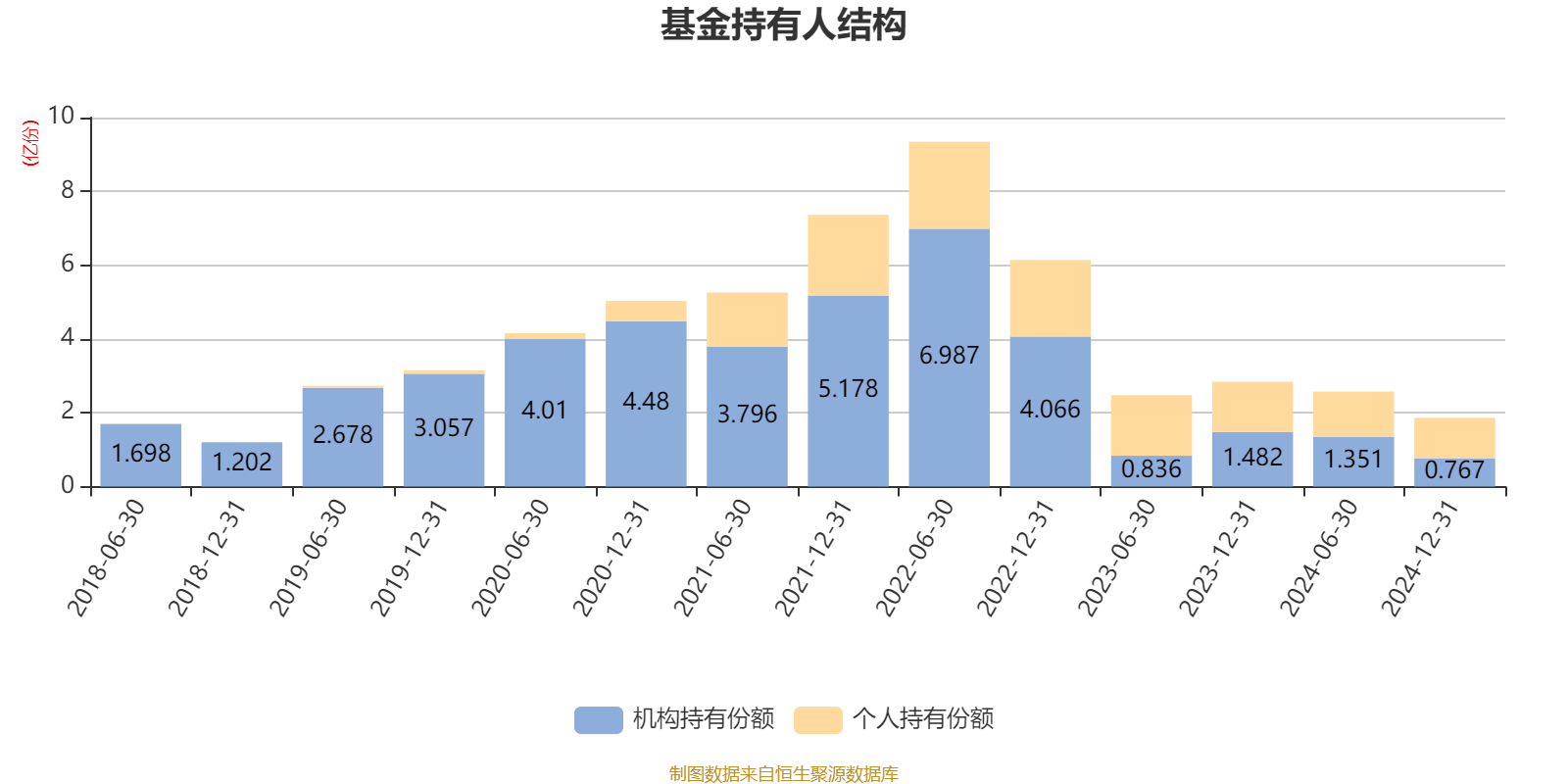 截至2024年12月31日,基金持有人共计6689户,合计持有1.86亿份。其中管理人员工持有109.89万份,占比0.59%,机构持有份额占比41.17%,个人投资者占比58.83%。