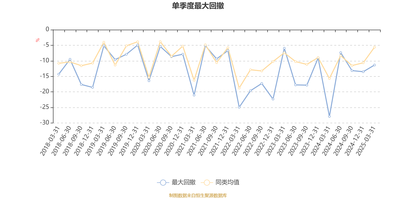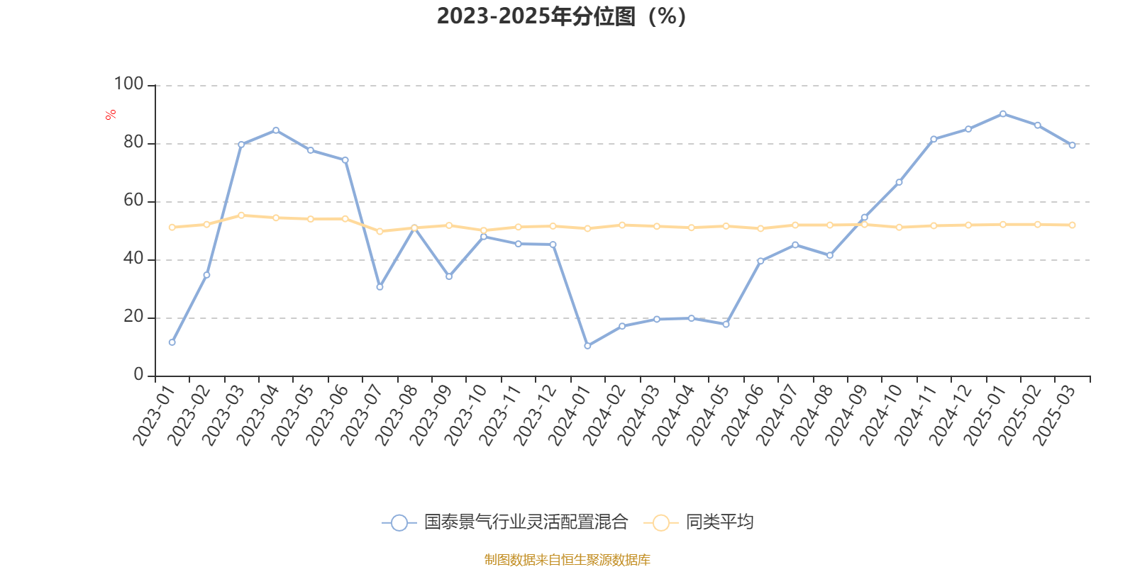 通过所选区间该基金净值增长率分位图,可以观察该基金与同类基金业绩比较情况。图为坐标原点到区间内某时点的净值增长率在同类基金中的分位数。