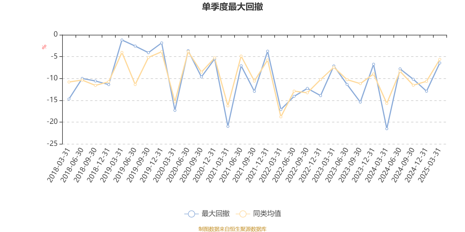 通过所选区间该基金净值增长率分位图,可以观察该基金与同类基金业绩比较情况。图为坐标原点到区间内某时点的净值增长率在同类基金中的分位数。