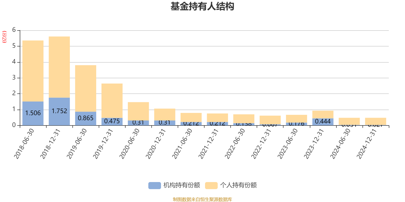 截至2024年12月31日,基金持有人共计4422户,合计持有4782.1万份。其中管理人员工持有5.37万份,占比0.11%,机构持有份额占比5.57%,个人投资者占比94.43%。