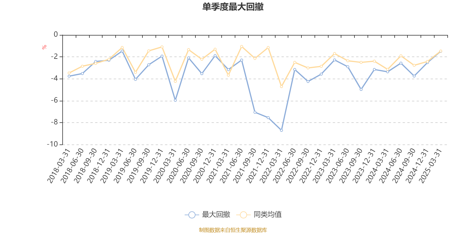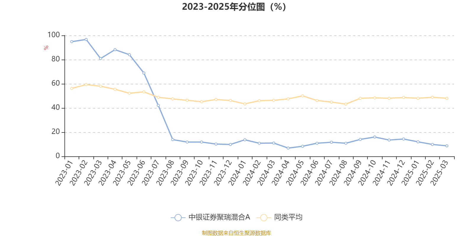通过所选区间该基金净值增长率分位图,可以观察该基金与同类基金业绩比较情况。图为坐标原点到区间内某时点的净值增长率在同类基金中的分位数。