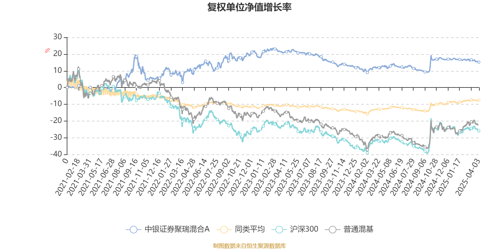 截至4月3日,中银证券聚瑞混合A近三个月复权单位净值增长率为-1.33%,位于同类可比基金649/670;近半年复权单位净值增长率为-1.28%,位于同类可比基金637/670;近一年复权单位净值增长率为2.02%,位于同类可比基金564/667;近三年复权单位净值增长率为4.81%,位于同类可比基金293/559。
