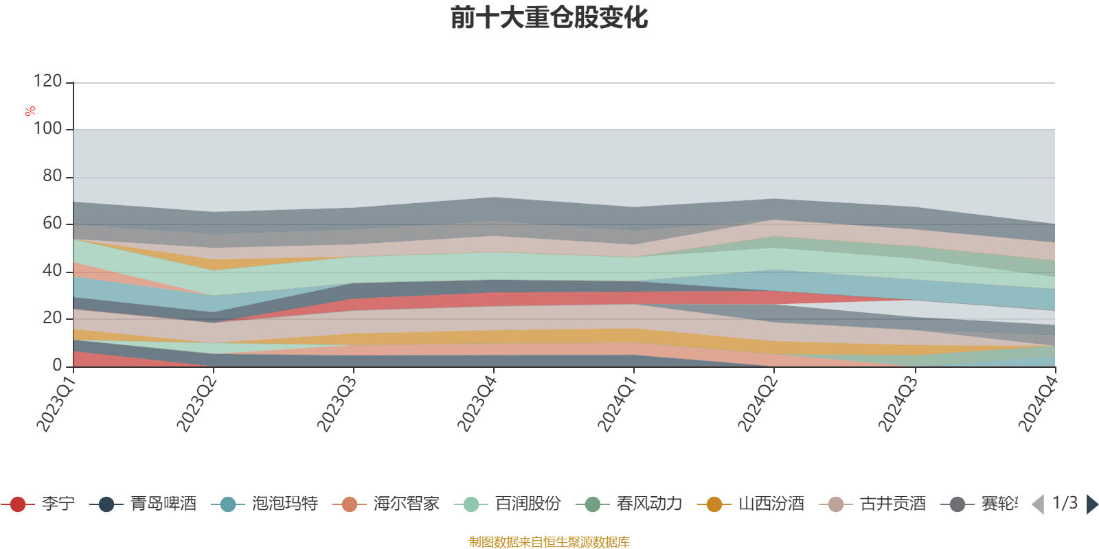 该基金持股集中度较高,近2年前十大重仓股集中度长期超过60%。截至2024年末,基金十大重仓股分别是腾讯控股、五粮液、长城汽车、东鹏饮料、阿里巴巴-W、贵州茅台、赛轮轮胎、泡泡玛特、美团-W、春风动力。