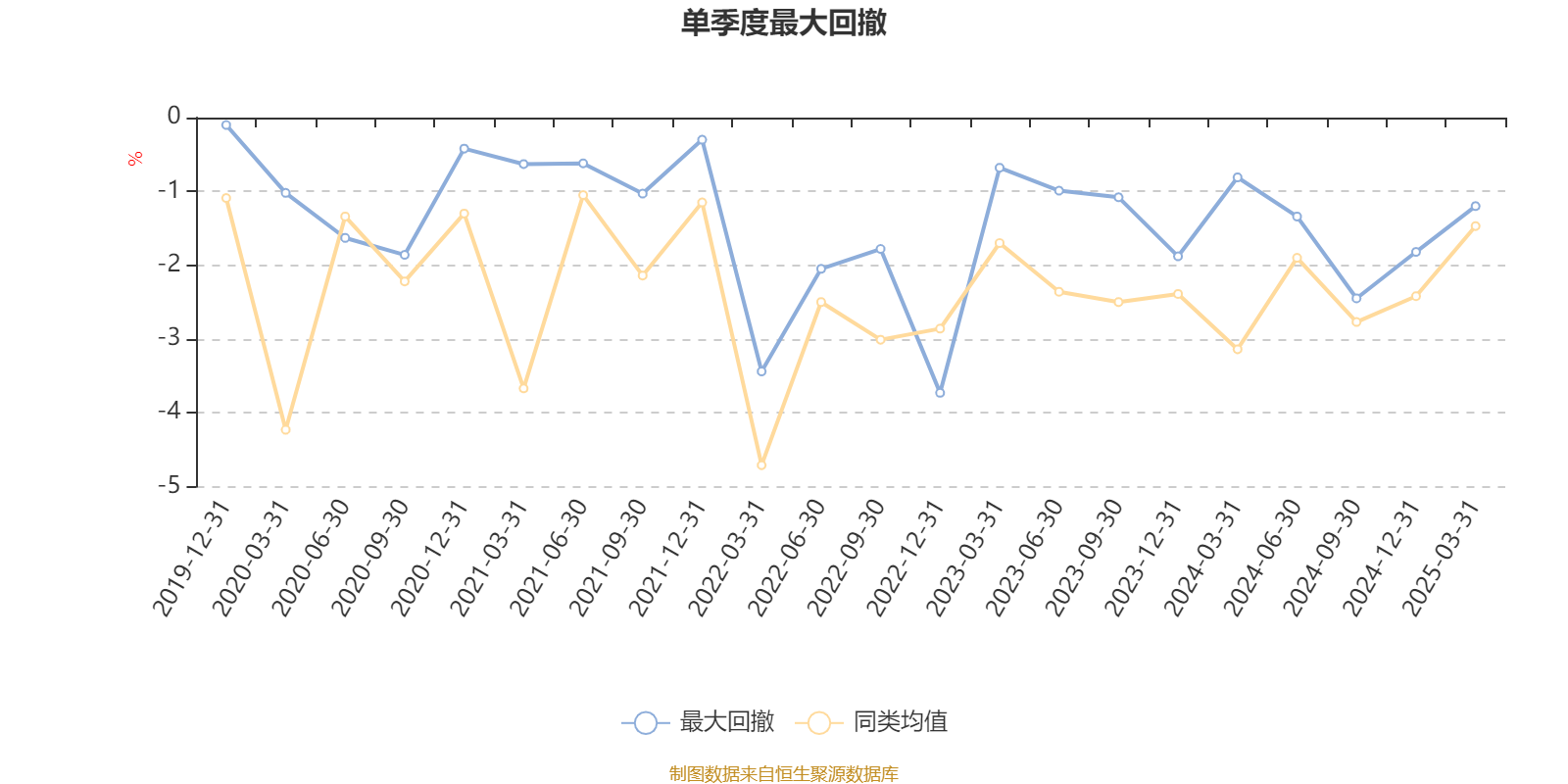 通过所选区间该基金净值增长率分位图,可以观察该基金与同类基金业绩比较情况。图为坐标原点到区间内某时点的净值增长率在同类基金中的分位数。