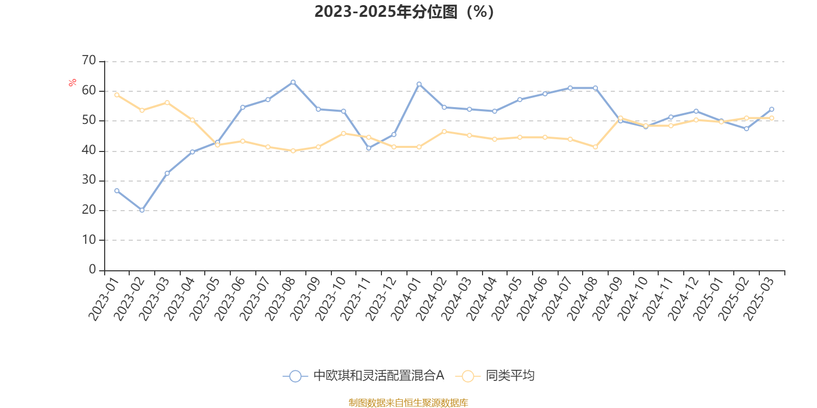 通过所选区间该基金净值增长率分位图,可以观察该基金与同类基金业绩比较情况。图为坐标原点到区间内某时点的净值增长率在同类基金中的分位数。