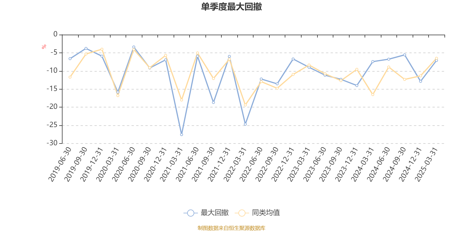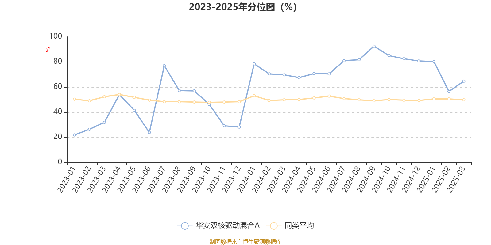 通过所选区间该基金净值增长率分位图,可以观察该基金与同类基金业绩比较情况。图为坐标原点到区间内某时点的净值增长率在同类基金中的分位数。