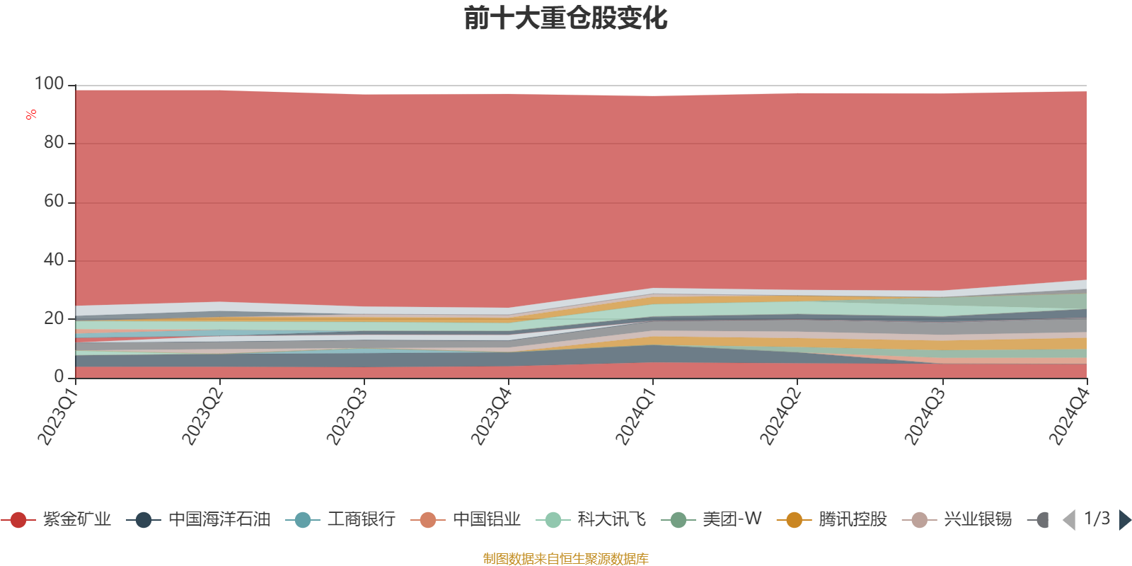 且持股标的较为稳定。截至2024年末,基金十大重仓股分别是小米集团-W、紫金矿业、中国宏桥、腾讯控股、中国南方航空股份、中国国航、美团-W、中国铝业、兴业银锡、吉祥航空、南方航空。