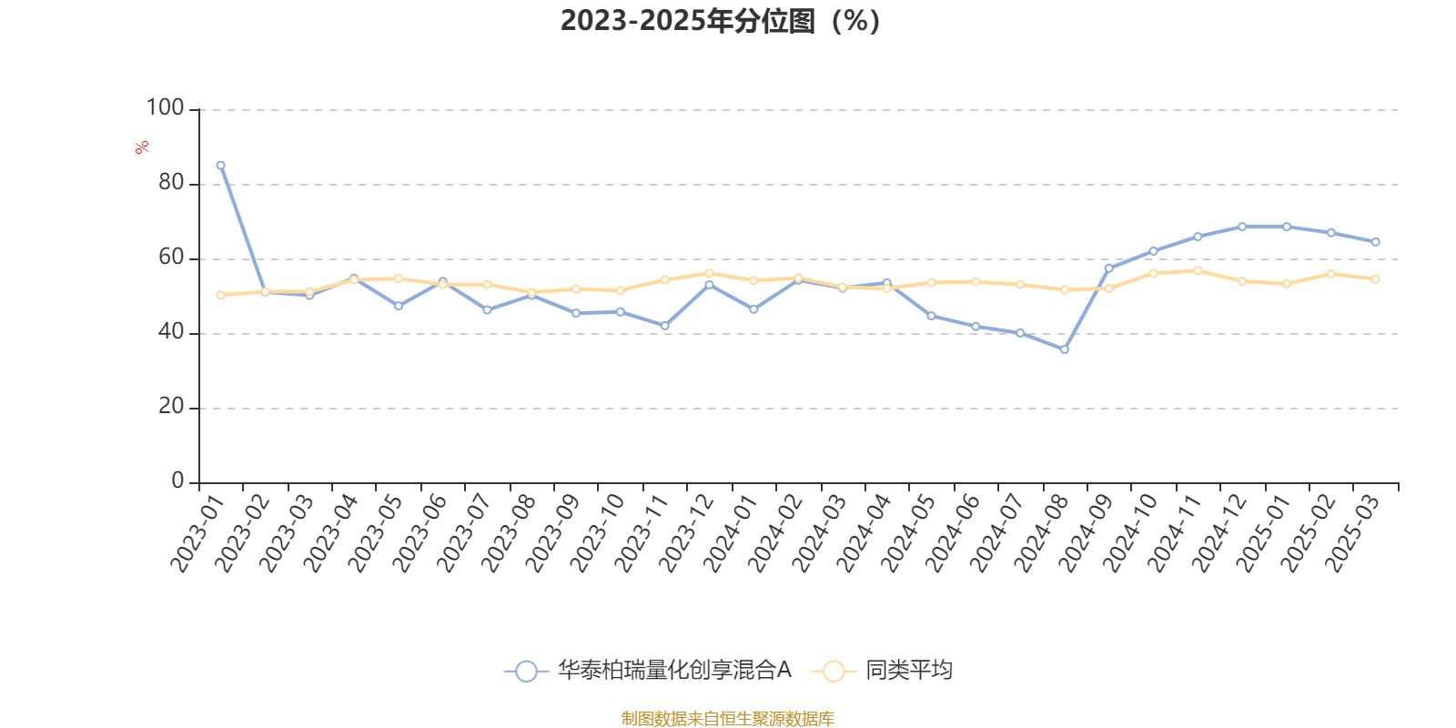 通过所选区间该基金净值增长率分位图,可以观察该基金与同类基金业绩比较情况。图为坐标原点到区间内某时点的净值增长率在同类基金中的分位数。