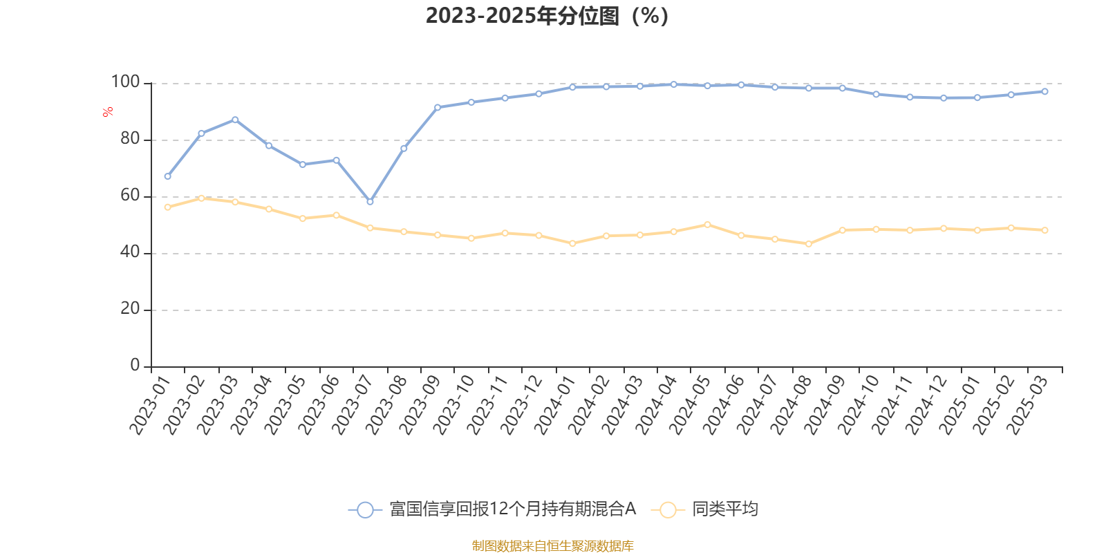 通过所选区间该基金净值增长率分位图,可以观察该基金与同类基金业绩比较情况。图为坐标原点到区间内某时点的净值增长率在同类基金中的分位数。