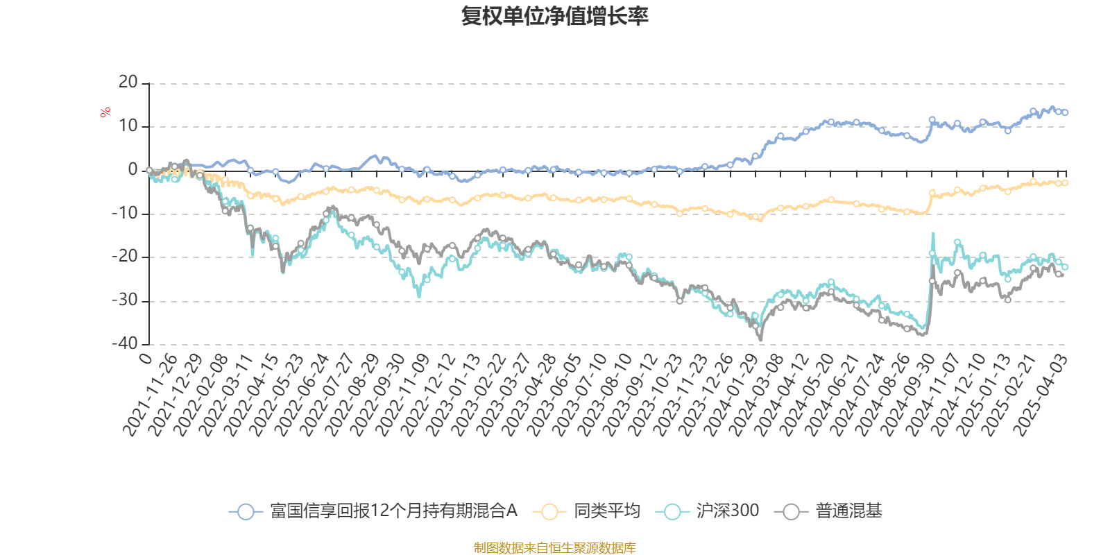 截至4月3日,富国信享回报12个月持有期混合A近三个月复权单位净值增长率为3.06%,位于同类可比基金100/670;近半年复权单位净值增长率为1.47%,位于同类可比基金393/670;近一年复权单位净值增长率为4.45%,位于同类可比基金356/667;近三年复权单位净值增长率为13.39%,位于同类可比基金50/559。