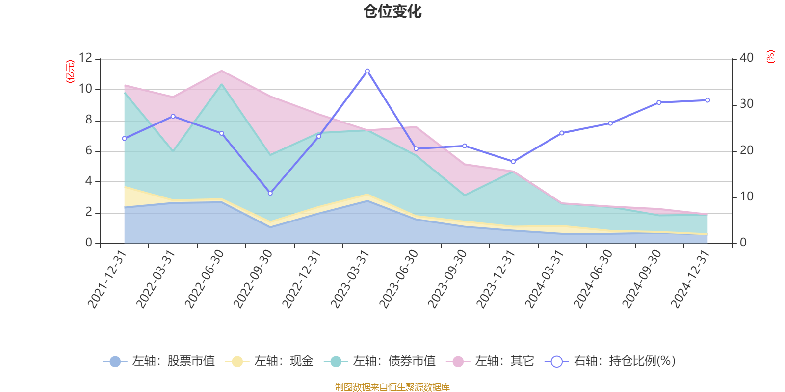 据定期报告数据统计,近三年平均股票仓位为24.47%,同类平均为18.74%。2023年一季度末基金达到37.37%的最高仓位,2022年三季度末最低,为10.86%。