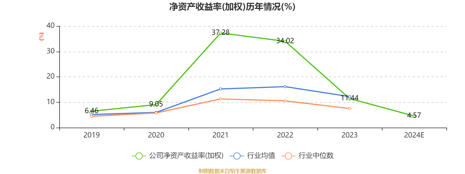 数据显示,2024年公司加权平均净资产收益率为4.57%,较上年同期下降6.87个百分点。