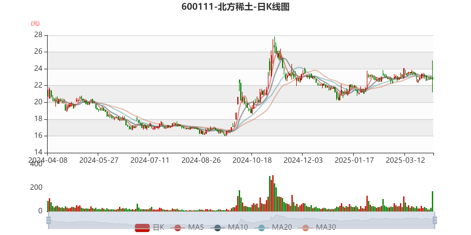 北方稀土:2024年净利10.04亿元 同比下降57.64%