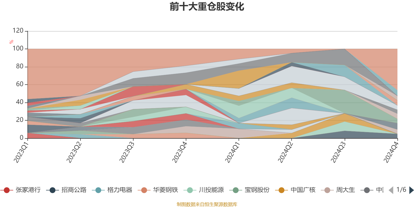 截至2024年末,基金十大重仓股分别是渝农商行、中金黄金、四川路桥、安徽建工、宁沪高速、国投电力、招商公路、皖能电力、申能股份、金域医学。