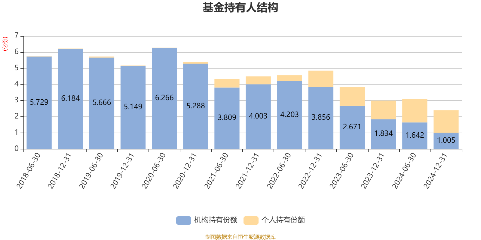 截至2024年12月31日,基金持有人共计5.22万户,合计持有2.4亿份。其中管理人员工持有84.73万份,占比0.35%,机构持有份额占比41.89%,个人投资者占比58.11%。
