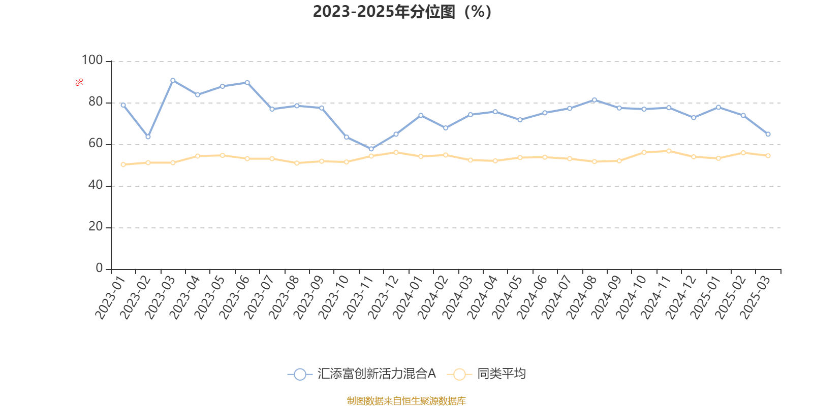 通过所选区间该基金净值增长率分位图,可以观察该基金与同类基金业绩比较情况。图为坐标原点到区间内某时点的净值增长率在同类基金中的分位数。