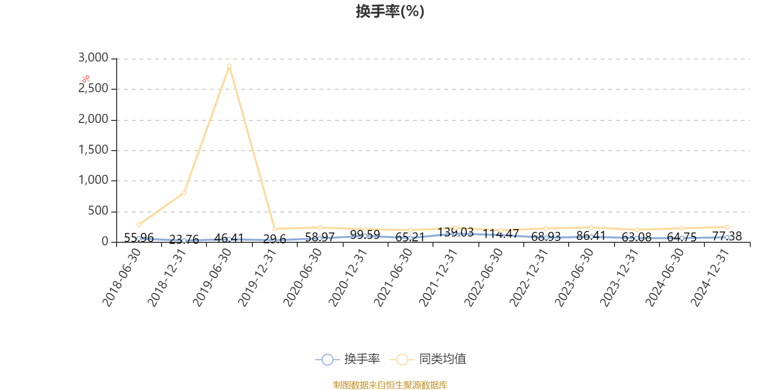 截至2024年12月31日,基金最近一年换手率约139.86%,持续低于同类均值。