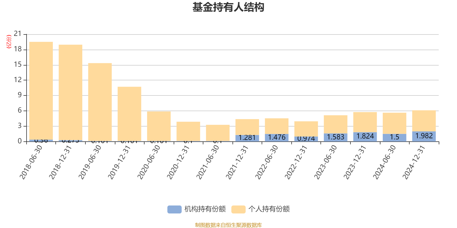 截至2024年12月31日,基金持有人共计11万户,合计持有6.1亿份。其中管理人员工持有194.88万份,占比0.32%,机构持有份额占比32.46%,个人投资者占比67.54%。