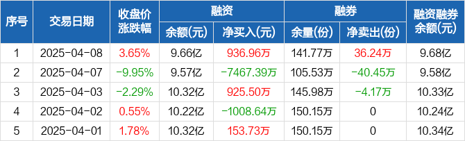 纳指ETF融资融券信息显示,2025年4月8日融资净买入936.96万元;融资余额9.66亿元,较前一日增加0.98%。