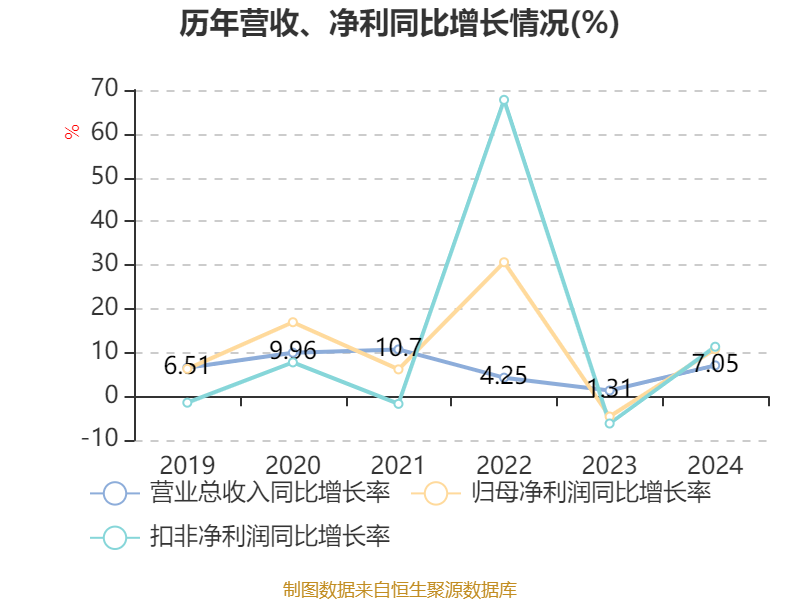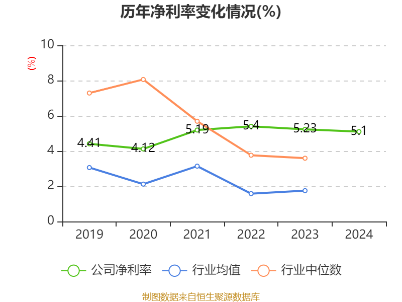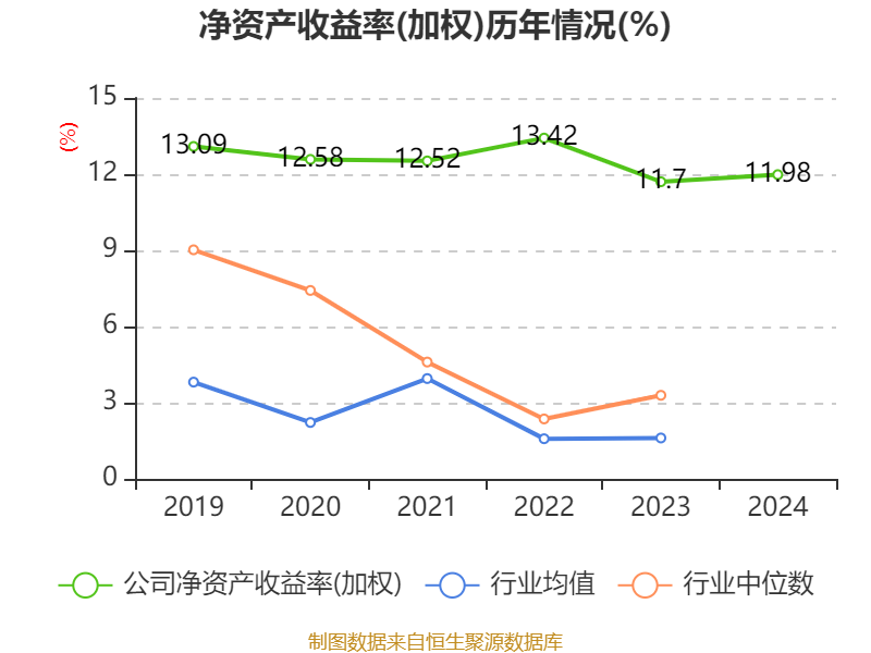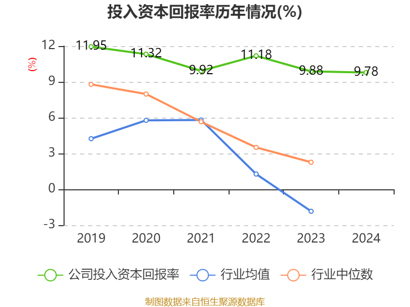 数据显示,2024年公司加权平均净资产收益率为11.98%,较上年同期上升0.28个百分点。公司2024年投入资本回报率为9.78%,较上年同期下降0.1个百分点。