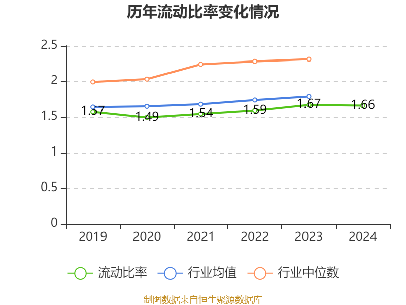2024年,公司流动比率为1.66,速动比率为1.05。