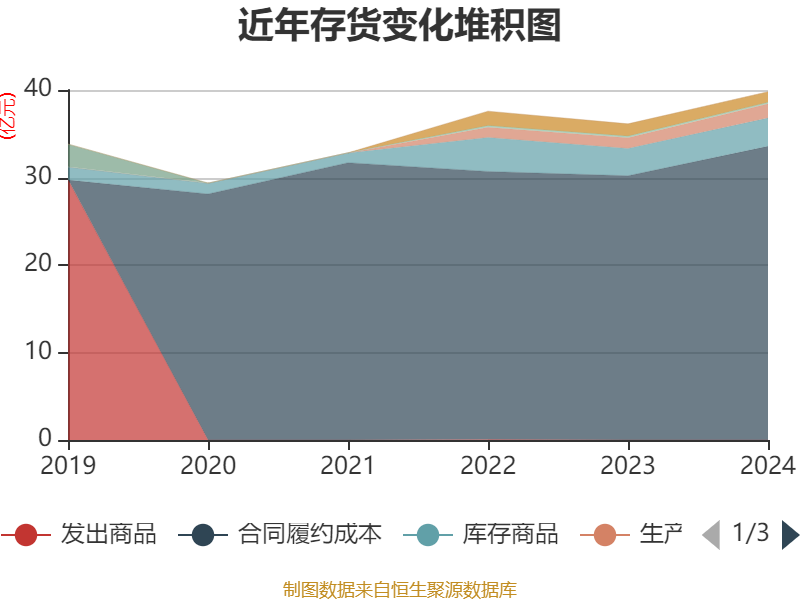 从存货变动来看,截至2024年末,公司存货账面价值为39.79亿元,占净资产的82.25%,较上年末增加3.66亿元。其中,存货跌价准备为7773.55万元,计提比例为1.92%。