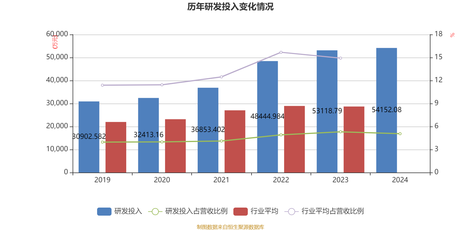 2024年全年,公司研发投入金额为5.42亿元,同比增长1.95%;研发投入占营业收入比例为5.06%,相比上年同期下降0.25个百分点。此外,公司全年研发投入资本化率为19.07%。