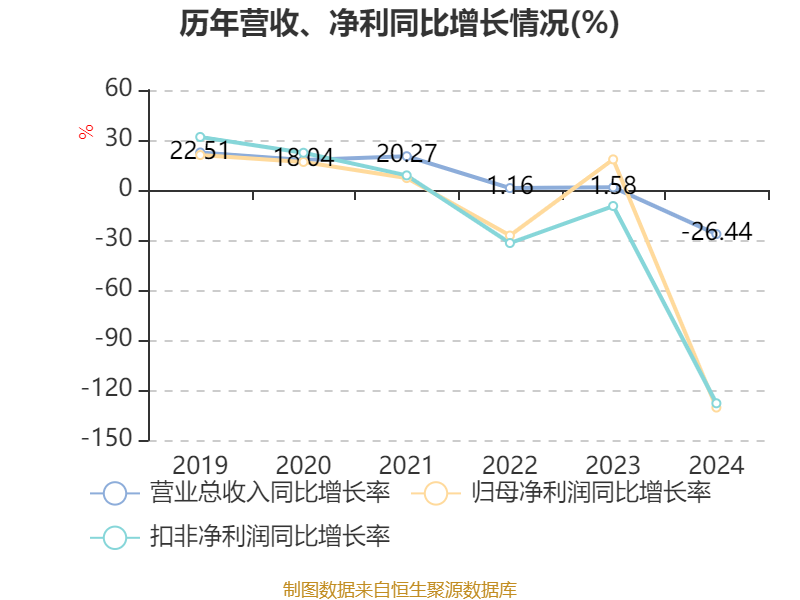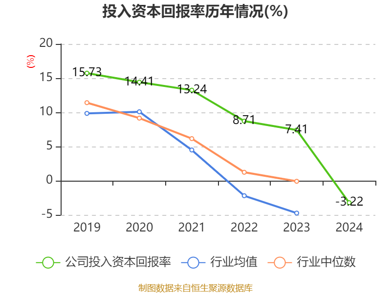 数据显示,2024年公司加权平均净资产收益率为-1.93%,较上年同期下降11.57个百分点。公司2024年投入资本回报率为-3.22%,较上年同期下降10.63个百分点。