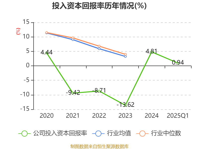 盈利能力方面, 2025年一季度公司加权平均净资产收益率为0.59%,同比下降1.59个百分点。公司2025年第一季度投入资本回报率为0.94%,较上年同期下降2.07个百分点。