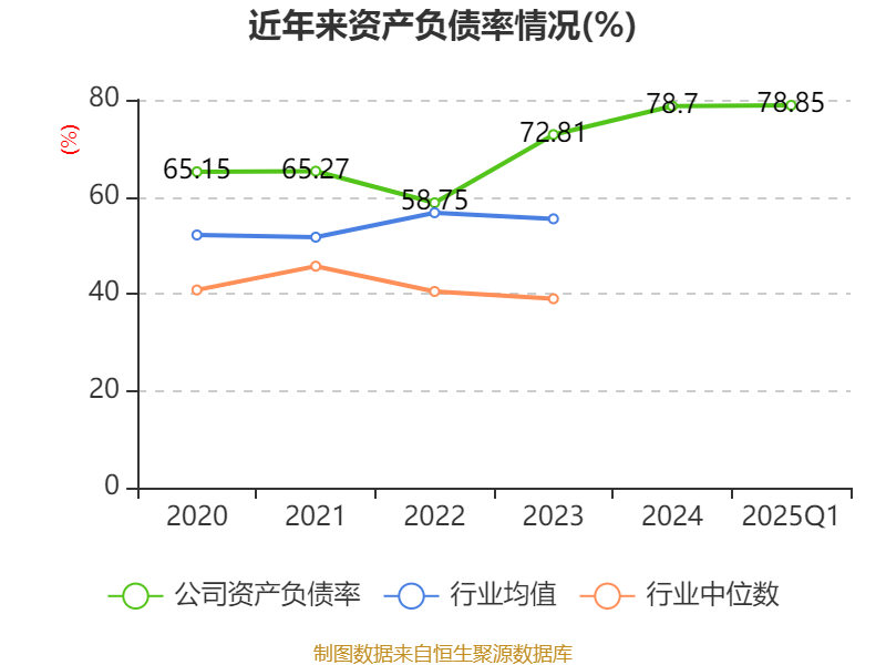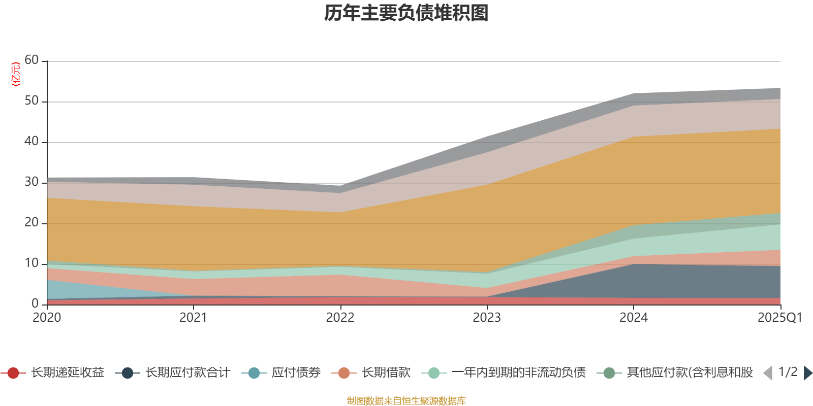 负债重大变化方面,截至2025年一季度末,公司长期借款较上年末增加102.2%,占公司总资产比重上升2.91个百分点;一年内到期的非流动负债较上年末增加45.06%,占公司总资产比重上升2.72个百分点;应付票据及应付账款较上年末减少4.74%,占公司总资产比重下降2.28个百分点;其他应付款(含利息和股利)较上年末减少15.51%,占公司总资产比重下降0.88个百分点。