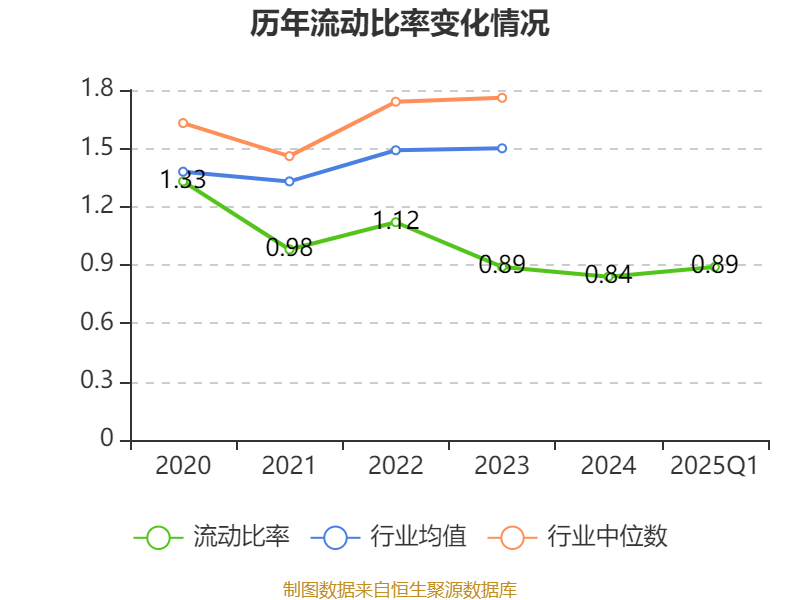 2025年第一季度,公司流动比率为0.89,速动比率为0.71。
