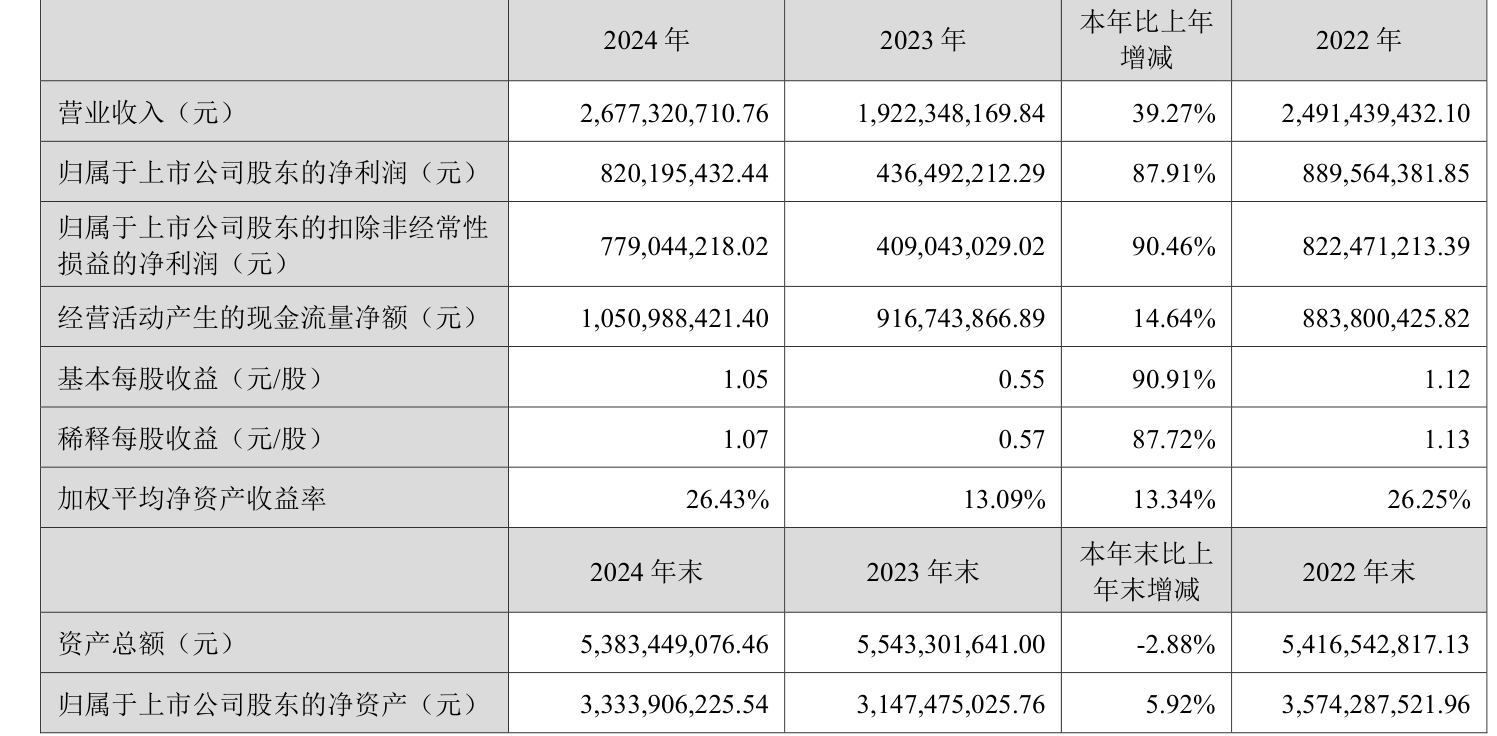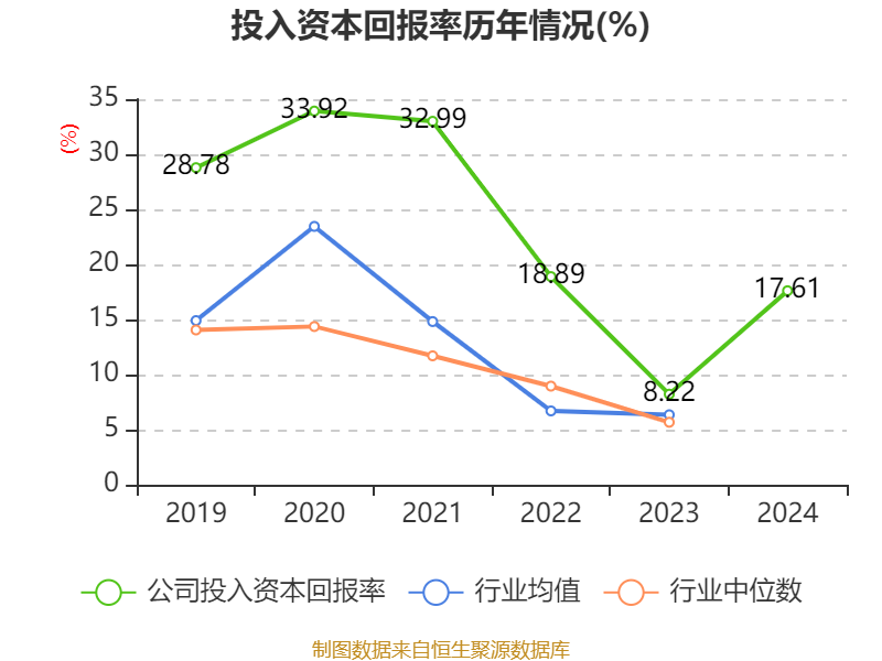 数据显示,2024年公司加权平均净资产收益率为26.43%,较上年同期上升13.34个百分点。公司2024年投入资本回报率为17.61%,较上年同期上升9.39个百分点。