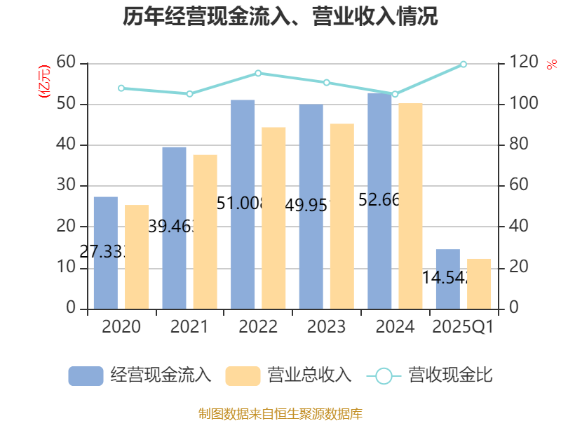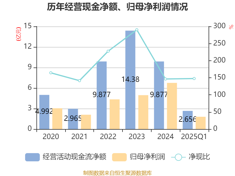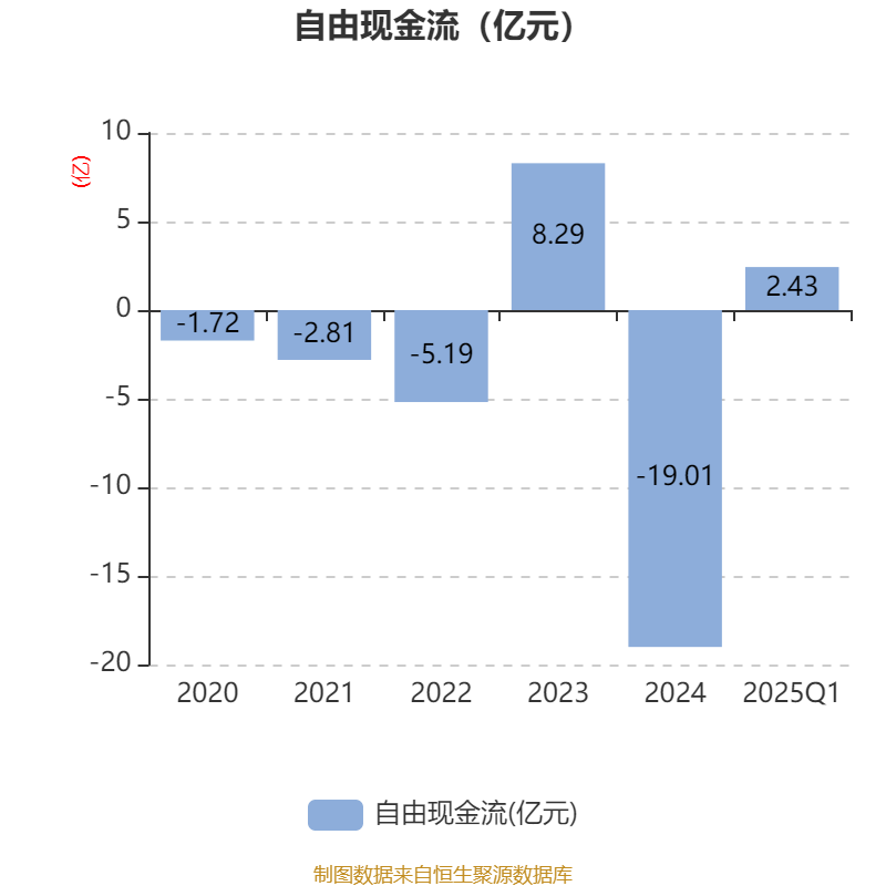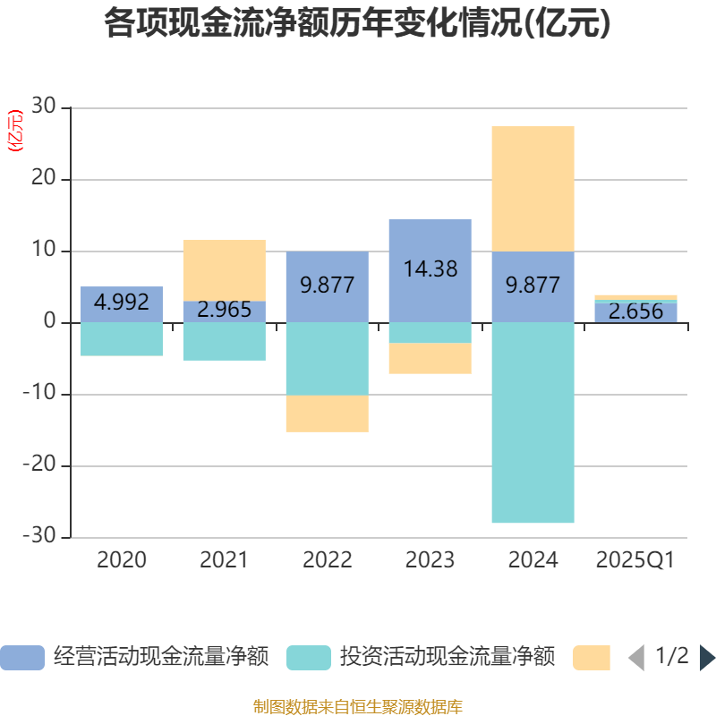 截至2025年一季度末,公司经营活动现金流净额为2.66亿元,同比增长67.57%;筹资活动现金流净额6510.68万元,同比减少17.34亿元;投资活动现金流净额4709.12万元,上年同期为-2.57亿元。