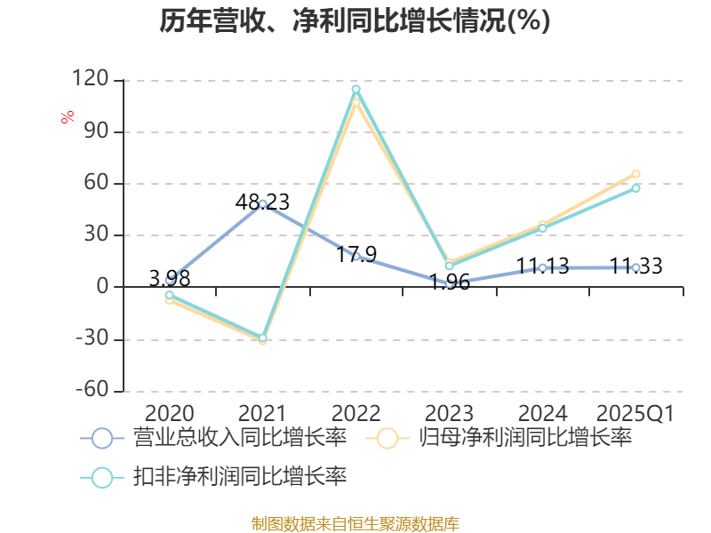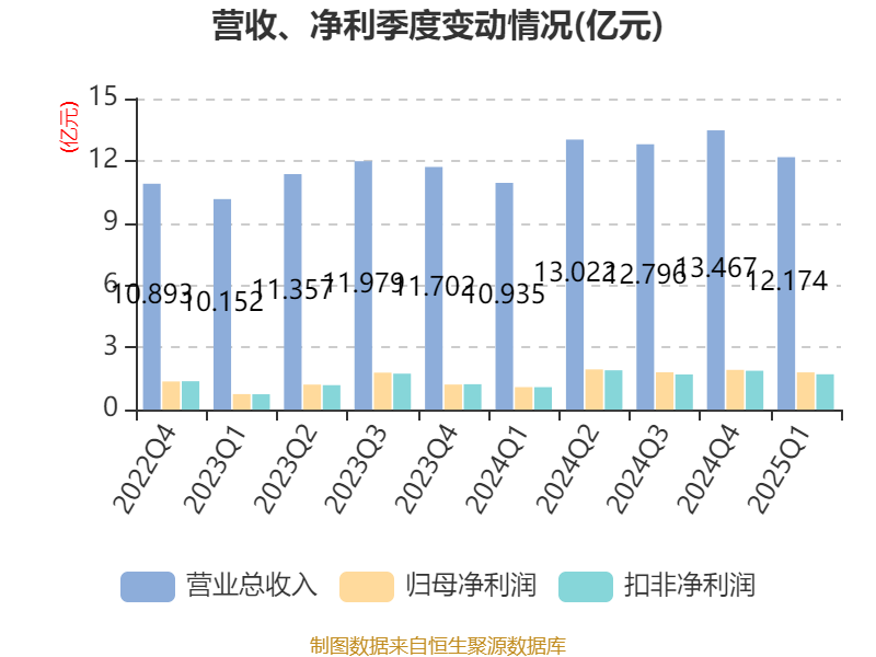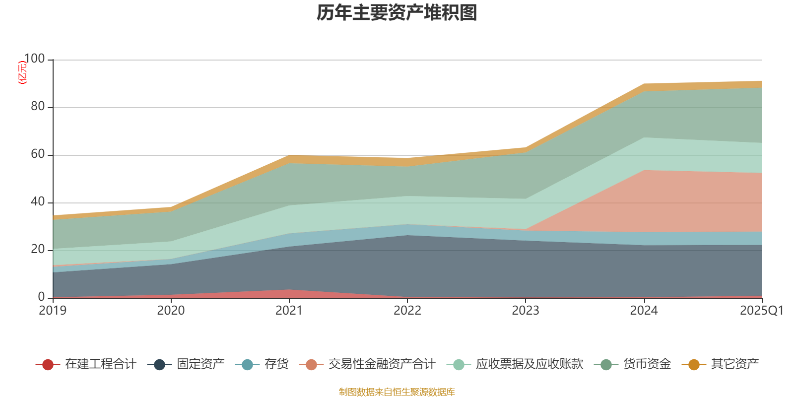 资产重大变化方面,截至2025年一季度末,公司货币资金较上年末增加20.06%,占公司总资产比重上升3.99个百分点;交易性金融资产合计较上年末减少5.45%,占公司总资产比重下降1.92个百分点;应收票据及应收账款较上年末减少8.37%,占公司总资产比重下降1.45个百分点;固定资产较上年末减少2.34%,占公司总资产比重下降0.87个百分点。