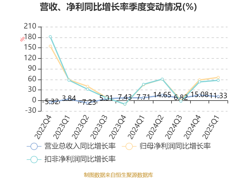 负债重大变化方面,截至2025年一季度末,公司应付票据及应付账款较上年末减少7.2%,占公司总资产比重下降1.39个百分点;短期借款较上年末增加11.56%,占公司总资产比重上升0.49个百分点;应付职工薪酬较上年末减少6.84%,占公司总资产比重下降0.11个百分点;递延所得税负债较上年末减少4.78%,占公司总资产比重下降0.05个百分点。