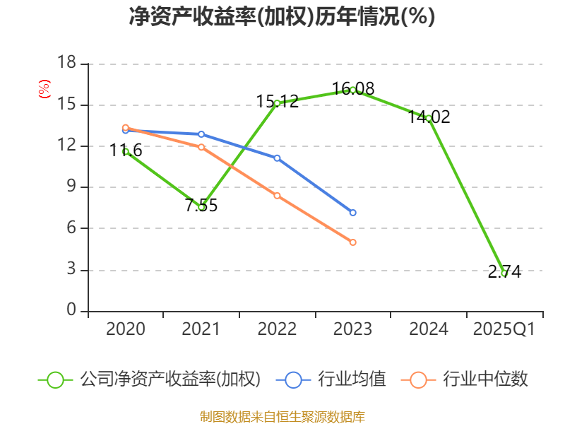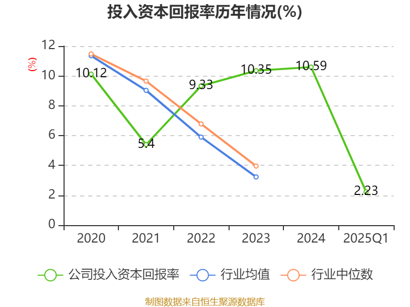 盈利能力方面, 2025年一季度公司加权平均净资产收益率为2.74%,同比下降0.51个百分点。公司2025年第一季度投入资本回报率为2.23%,较上年同期上升0.4个百分点。
