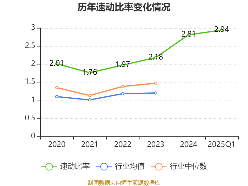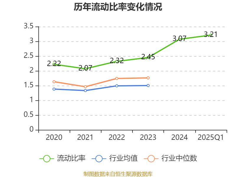 2025年第一季度,公司流动比率为3.21,速动比率为2.94。