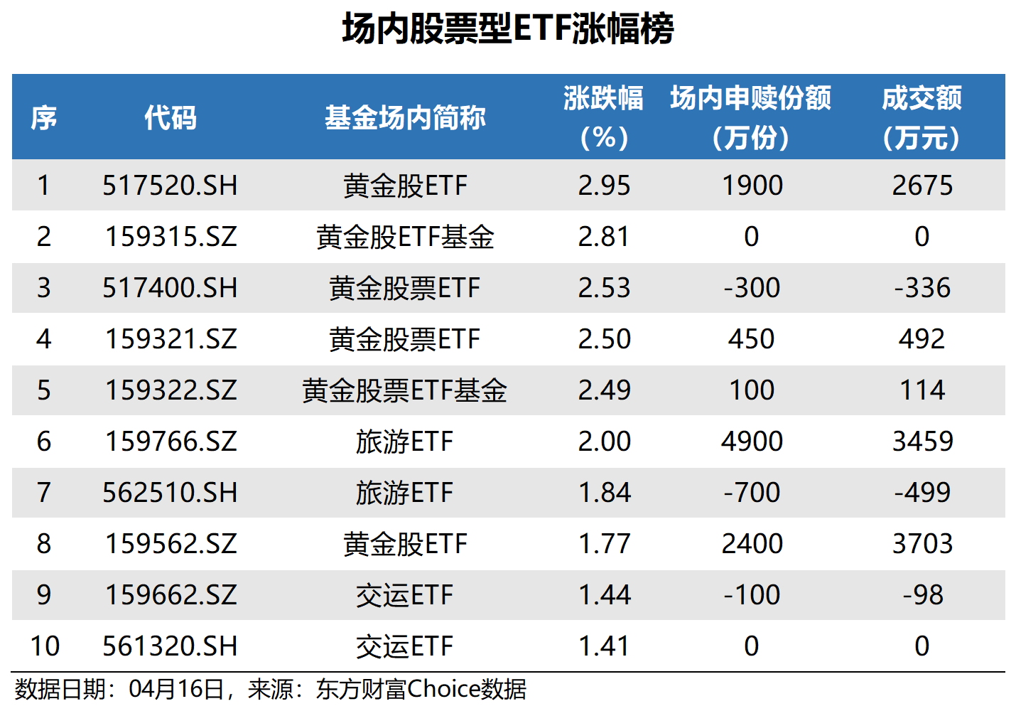 黄金股ETF涨幅最大