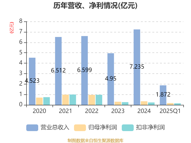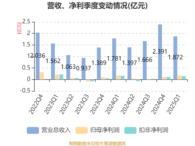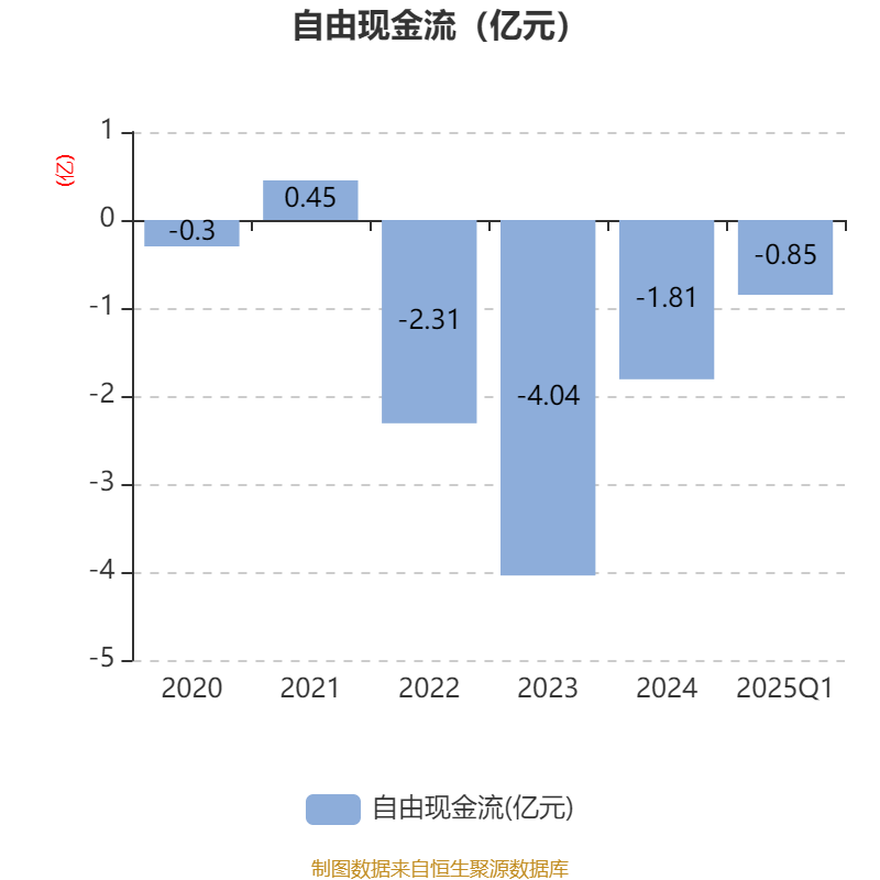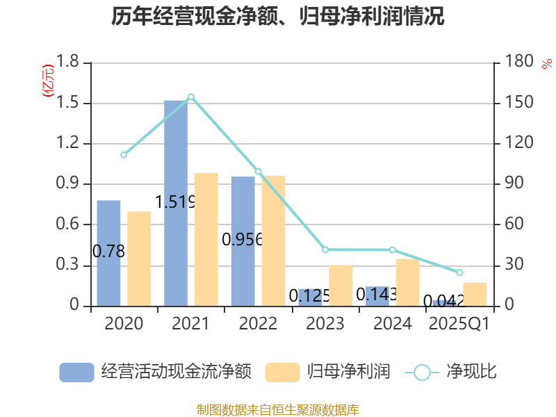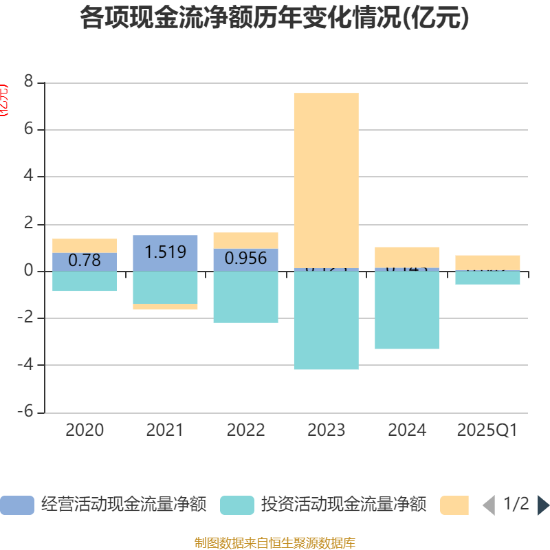 截至2025年一季度末,公司经营活动现金流净额为422.42万元,同比增加571.98万元;筹资活动现金流净额6195.93万元,同比增加5814.91万元;投资活动现金流净额-5683.31万元,上年同期为5847.12万元。