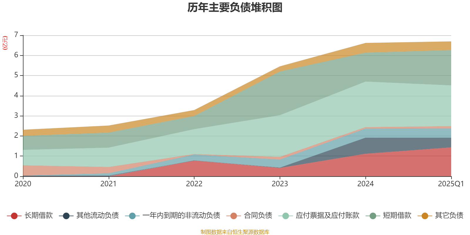 负债重大变化方面,截至2025年一季度末,公司其他流动负债较上年末减少39.98%,占公司总资产比重下降1.63个百分点;长期借款较上年末增加28.26%,占公司总资产比重上升1.5个百分点;短期借款较上年末增加21.95%,占公司总资产比重上升1.48个百分点;应付票据及应付账款较上年末减少10.54%,占公司总资产比重下降1.33个百分点。