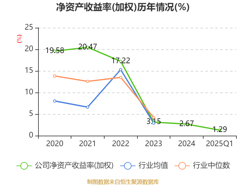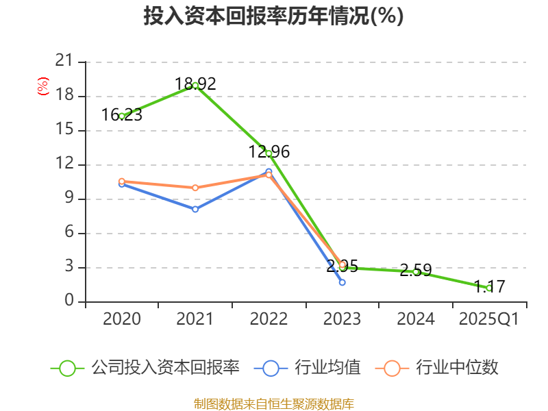 盈利能力方面, 2025年一季度公司加权平均净资产收益率为1.29%,同比下降0.07个百分点。公司2025年第一季度投入资本回报率为1.17%,较上年同期持平。