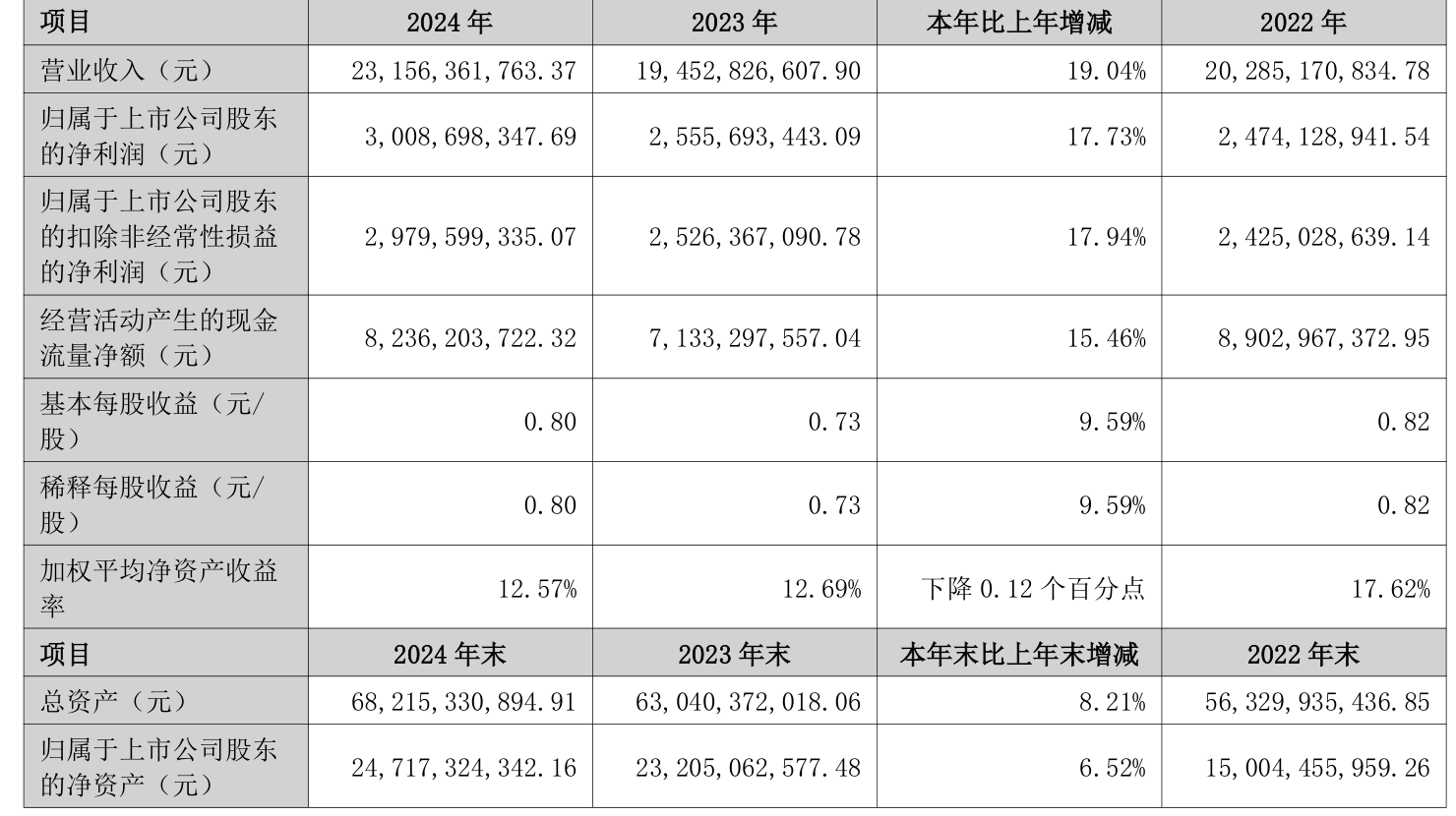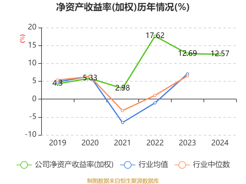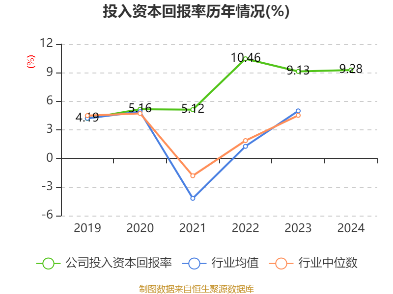 数据显示,2024年公司加权平均净资产收益率为12.57%,较上年同期下降0.12个百分点。公司2024年投入资本回报率为9.28%,较上年同期上升0.15个百分点。