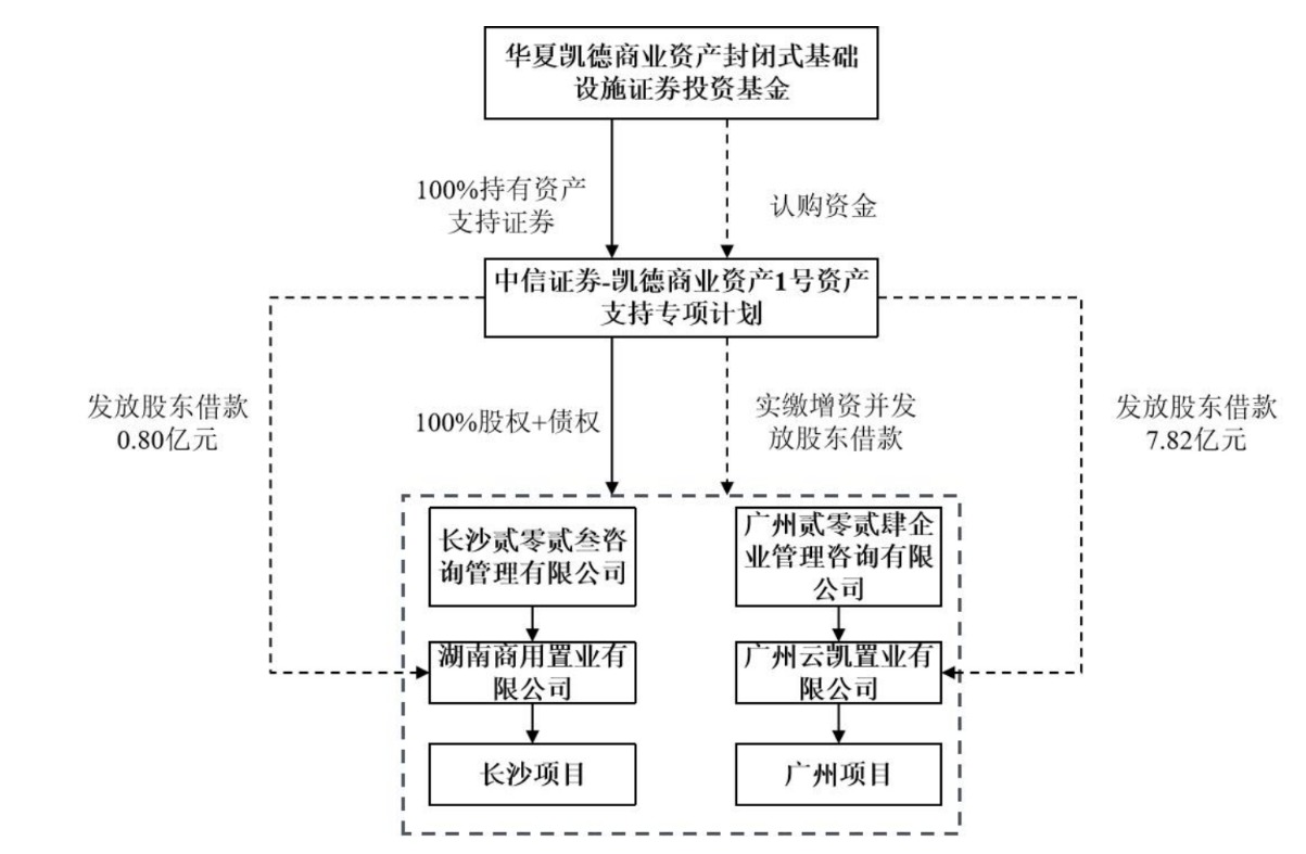 凯德商业C-REIT的原始权益人包括长沙凯亭、广州凯云和广州云凯。截至2024年12月31日,凯德中国信托下属凯德长沙持有长沙项目公司100%股权,并通过长沙项目公司持有长沙项目。凯德商用下属宏伟峰公司与广州云凯分别持有广州项目公司70%和30%股权,并通过广州项目公司持有广州项目。