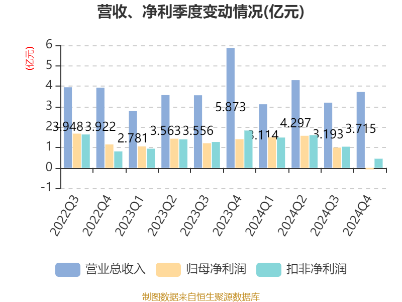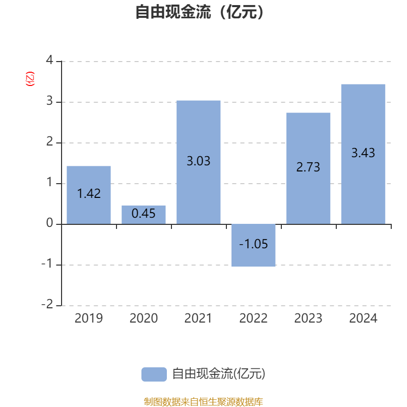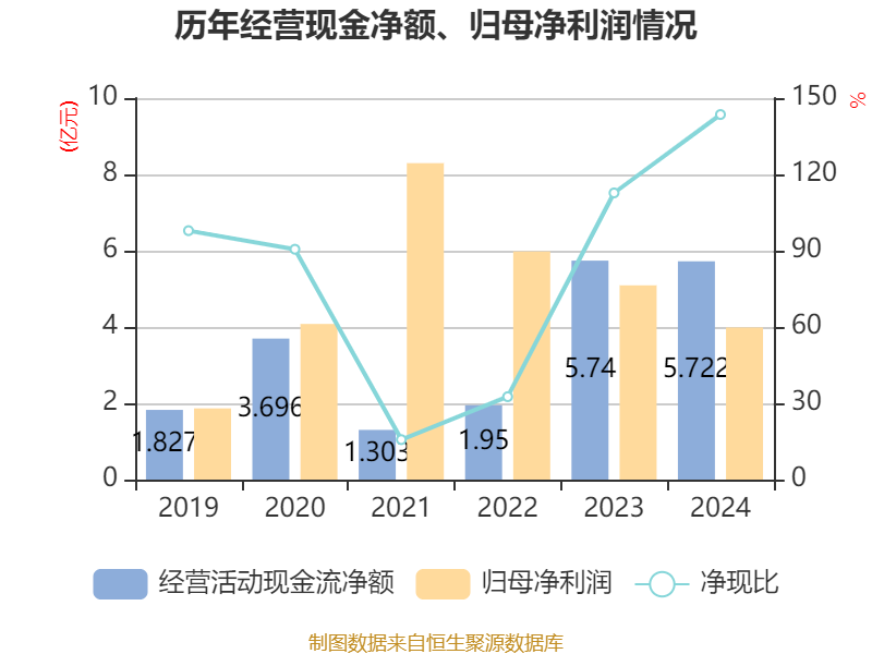 截至2024年,公司经营活动现金流净额为5.72亿元,同比下降0.3%;筹资活动现金流净额-4.72亿元,同比减少4.65亿元;投资活动现金流净额-3.42亿元,上年同期为-1.63亿元。