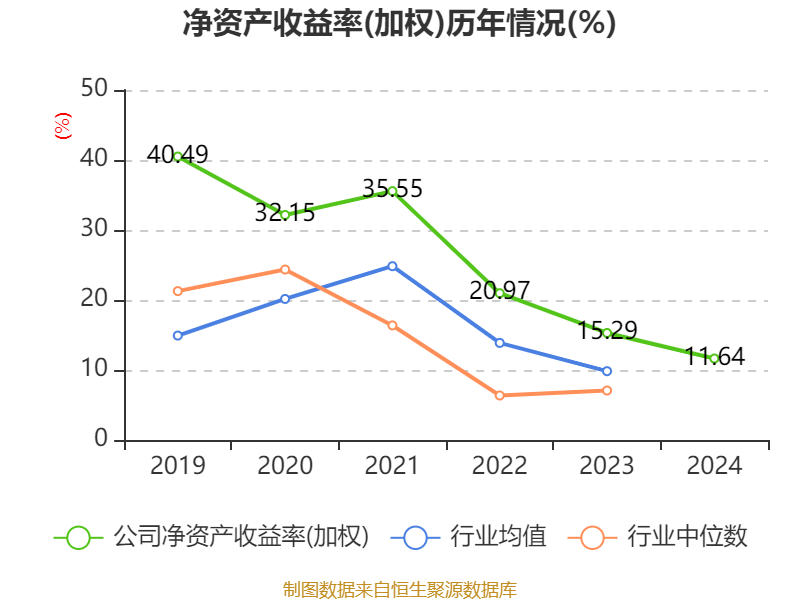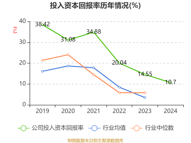 数据显示,2024年公司加权平均净资产收益率为11.64%,较上年同期下降3.65个百分点。公司2024年投入资本回报率为10.7%,较上年同期下降3.85个百分点。