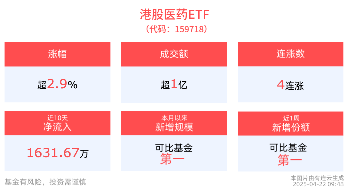 (原标题:港股医药ETF(159718)涨超3%冲击4连涨,医疗创新ETF(516820)迎来布局契机)