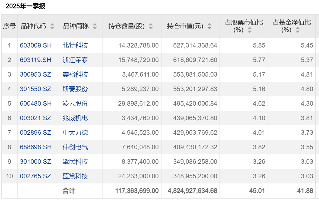 以下是鹏华碳中和主题混合基金的前十大重仓股。